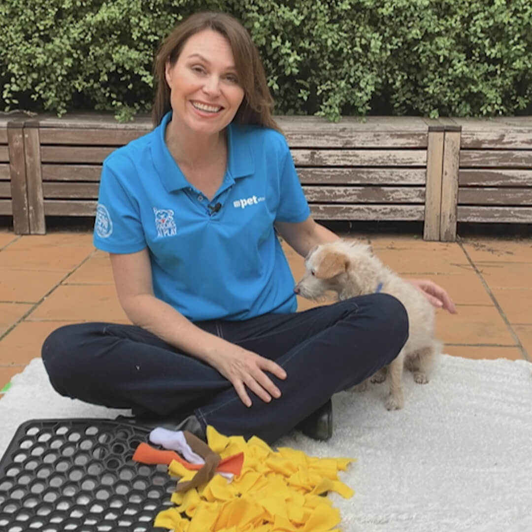 Stuck at home with a new puppy? Lara demonstrates how you can socialise your puppy from home. It is essential your puppy becomes familiar with all the sights and sounds of the world as soon as possible, so give these tips a go!