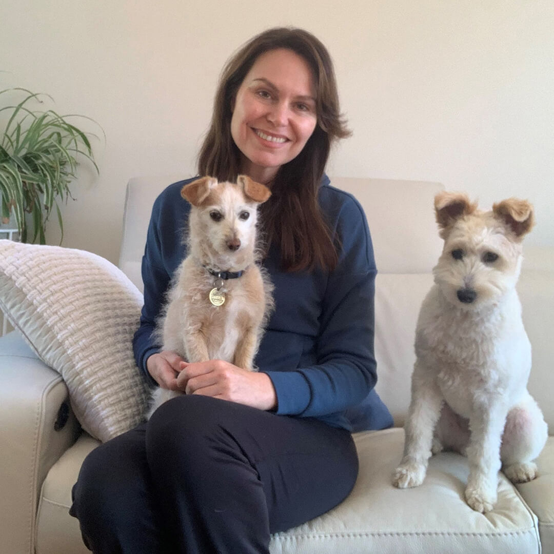 Psychotherapist, Laura, from @feelsgoodwellness talks mindfullness and the special work of therapy dog, Goldie.